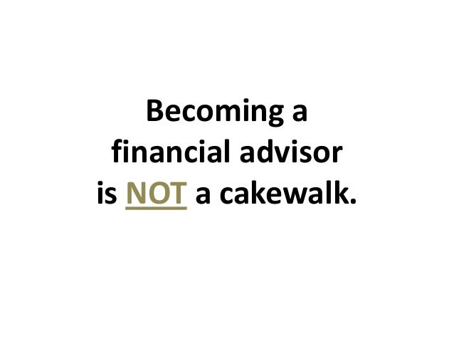 As you plan to launch your own firm, take steps to boost your productivity. Steps to becoming a financial advisor financial advisors work in a variety of settings. You want to use a disciplined process to find someone with whom you can work for many years. What does a financial advisor do? It's precisely because so much expertise is necessary that becoming a financial planner takes dedication. However, the route to becoming a financial adviser changed dramatically after the financial crisis of 2009. A financial advisor is a broad term that covers many types of professionals. You want to be spending more time with clients and less time on administrative. I have discussed below the complete step by step guide to become a financial advisor. A financial advisor is expert in seeing the total financial picture for individuals and families, and implementing strategies that benefit the client. Be mindful of the college or university you select. To be a successful financial advisor, you need specialized knowledge and licensing to conduct some transactions for your financial consulting clients. How to become a cfa charterholder. accessed feb.